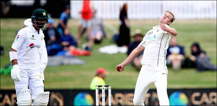 ترنگا: پاکستان اور نیوزی لینڈ کے درمیان جاری پہلے ٹیسٹ میچ میں فہیم اشرف کی جانب تیز تھرو کرنا کیوی فاسٹ بولر کو مہنگا پڑ گیا۔
