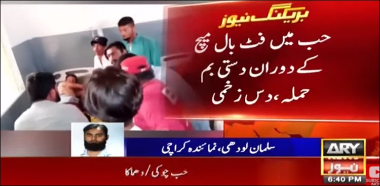 کراچی: شہر قائد کے علاقے حب چوکی کے قریب فٹبال میچ کے دوران گراؤنڈ میں دھماکا ہوا ہے۔