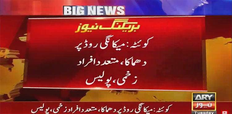 کوئٹہ: صوبائی دارالحکومت کوئٹہ میں میکانگی روڈ پر دھماکے کے نتیجے میں دو افراد جاں بحق اور متعدد افراد زخمی ہوگئے۔