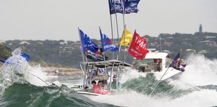 ریلی میں شامل شہری رواں سال نومبر میں ہونے والے انتخابات میں امریکی صدر کو سپورٹ اور ووٹ دینے کا عزم بھی ظاہر کررہے تھے کہ اچانک کئی بوٹس پانی میں ڈوب گئے۔