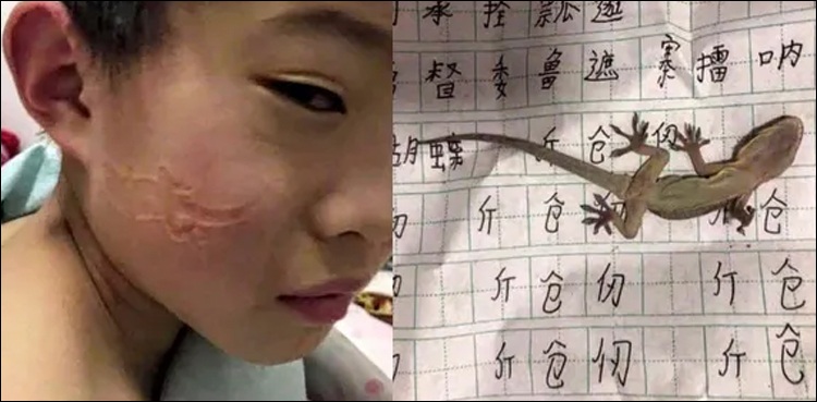 اسی طرح کا ایک واقعہ تائیوان سے تعلق رکھنے والے بچے کے ساتھ پیش آیا، بچہ جب سو کر اٹھا تو اس کے چہرے پر چھپکلی کا نشان موجود تھا، بچے کی تصویر سوشل میڈیا پر وائرل ہوگئی۔