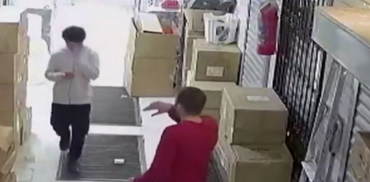 نوجوان موبائل فون کو استعمال کرتے ہوئے پیدل چل رہا ہے۔ اسے علم نہیں ہوتا کہ آگے کیا آ رہا ہے۔ وہ اسٹور کے کھلے ہول میں جا گرتا ہے لیکن زمین کے بجائے گتے کے ڈبوں پر گرنے سے کی وجہ سے وہ زخمی نہیں ہوا۔