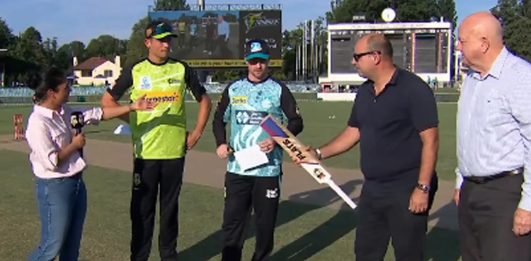 سڈنی تھنڈر اور برسبین ہیٹ کی ٹیموں کے درمیان میچ سے قبل ایک دلچسپ واقعہ رونما ہوا جب ٹاس کے لئے بلے کو دو مرتبہ اچھالا گیا۔
