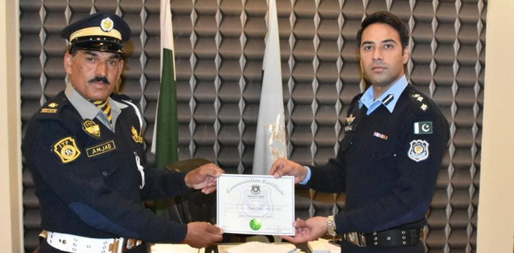 ایس ایس پی آپریشنز محمد فیصل نے ٹریفک پولیس افسر کو بہادری پر شاباش دیتے ہوئے اے ایس آئی امجد خان کو تعریفی سرٹیفکیٹ دیا۔