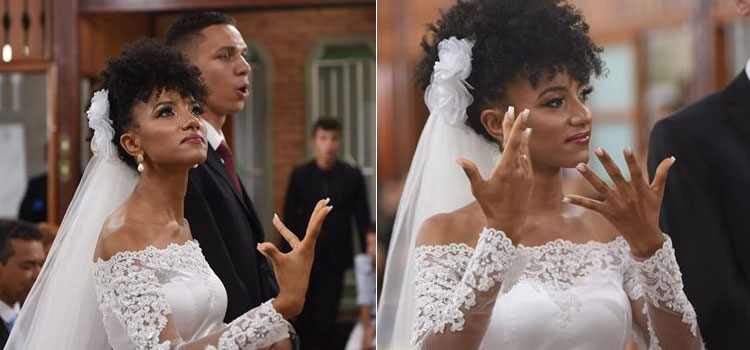 برازیلا: برازیل سے تعلق رکھنے والی قوت گویائی سے محروم لڑکی نے اپنی شادی میں مہمانوں کو اشاروں کی زبان سے خوش آمدید کہہ کر سب کے دل جیت لیے۔