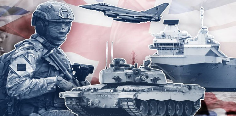آئندہ 10 سالوں میں دفاعی اخراجات 67.6 ارب پاؤنڈز تک پہنچائے جائیں گے، برطانوی حکومت نے اعلان کیا ہے کہ دفاعی بجٹ 2027 تک جی ڈی پی کا 2.5 فیصد کیا جائےگا۔