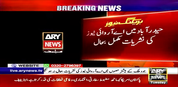 حیدرآباد میں اے آر وائی نیوز کی نشریات مکمل بحال