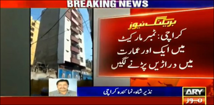 تفصیلات کے مطابق کراچی کے علاقے ٹمبر مارکیٹ میں ایک اور عمارت میں دراڑیں پڑنے لگیں جس کے بعد رہائشیوں نے عمارت کو خالی کردیا۔