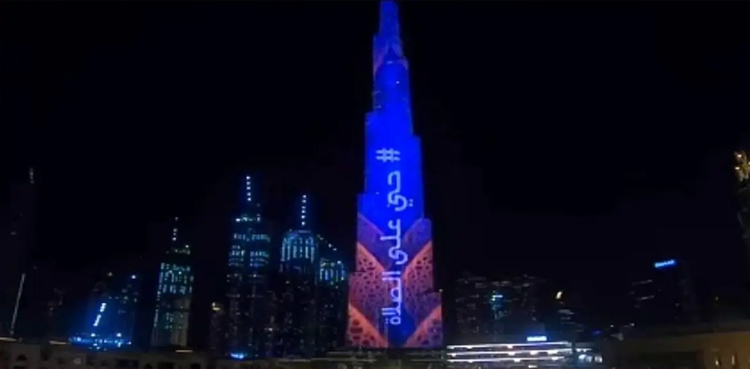 دبئی: رمضان المبارک میں دنیا کی سب سے اونچی عمارت برج الخلیفہ پر اذان کے الفاظ نمایاں ہوگئے جس کی ویڈیو سوشل میڈیا کے مختلف پلیٹ فارمز پر خوب وائرل ہو رہی ہے۔