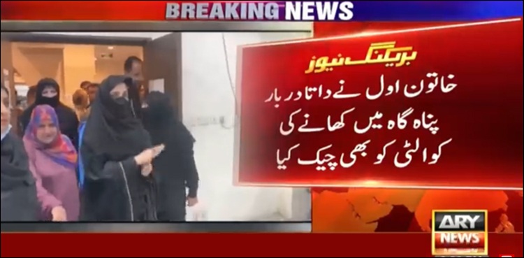 اے آر وائی نیوز کی رپورٹ کے مطابق خاتون اول بشریٰ عمران نے پناہ گاہ میں سہولیات کا جائزہ لیا، خاتون اول نے پناہ گاہ میں مقیم افراد سے مسائل دریافت کیے اور ان کے فوری حل کی یقین دہانی کروائی، پناہ گاہ کے دورے کے موقع پر فرح خان بھی خاتون اول کے ہمراہ تھیں۔