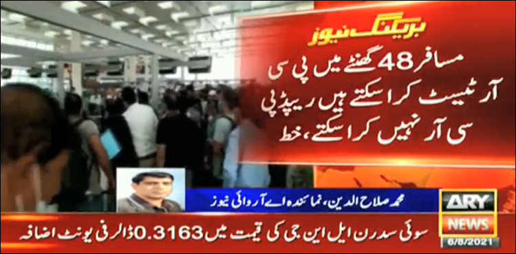 اے آر وائی نیوز کے مطابق دبئی جانے والے مسافروں پر عائد ہونے والی پی سی آر ٹیسٹ کی شرط کے بعد ہزاروں پاکستانی ملک کے مختلف ہوائی اڈوں پر پھنس گئے، جس کی وجہ سے ایئرپورٹس پر بہت زیادہ رش ہوا۔