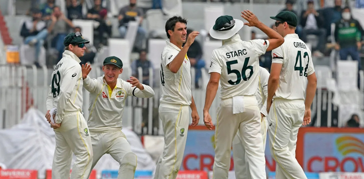 عثمان خواجہ 91 رنز بناکر نمایاں رہے جب کہ چار کھلاڑیوں نے نصف سنچریاں بنائیں۔ پاکستان کی جانب سے فاسٹ بولر نسیم شاہ اور شاہین شاہ آفریدی نے چار چار وکٹیں حاصل کی جب کہ نعمان علی اور ساجد خان ایک ایک آسٹریلوی کھلاڑی کو پویلین بھیجنے میں کامیاب ہوئے۔