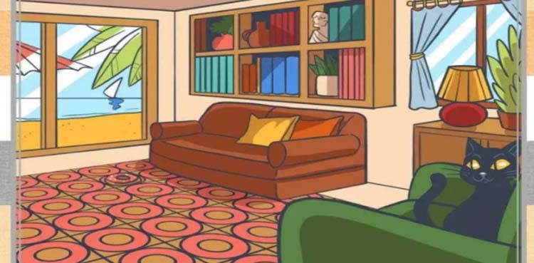 تصویر میں موجود کمرے میں فرنیچر رکھا اور ایک صوفے پر بلی موجود ہیں لیکن آپ کو یہ ڈھونڈنا ہے کہ اور اس میں ڈونٹ کہاں چھپا ہے؟