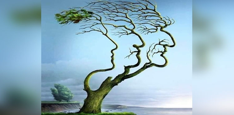 تصویر میں آپ دیکھ سکتے ہیں کہ درخت کی 3 بڑی شاخیں ہیں اور ان 3 شاخوں سے مزید شاخیں نکل رہی ہیں لیکن ہر ایک بڑی شاخ میں انسانی شکل کا نصف حصہ موجود ہے۔