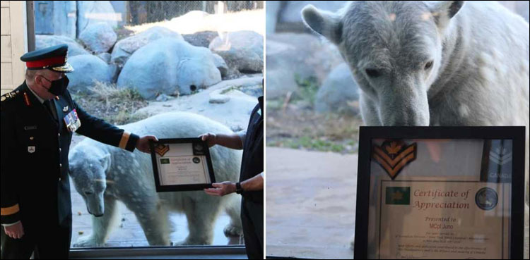 اوٹاوا : کینیڈین فوجی حکام نے چڑیا گھر میں مقیم برفانی ریچھ کو اعزازی طور پر اعلیٰ فوجی رینک پر تعینات کردیا۔