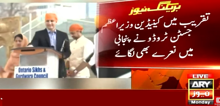 تقریب کی خاص بات یہ تھی کہ اس میں کینیڈا کے وزیراعظم جسٹن ٹروڈو نے اپوزیشن لیڈر کے ہمراہ نہ صرف شرکت کی بلکہ پنجابی میں نعرے بھی لگائے۔