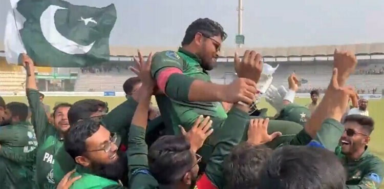 خیال رہے کہ پاکستان نے بنگلہ دیش کو شکست دے کر ٹی 20 بلائنڈ ورلڈ کپ کا عالمی چیمپئئن بننے کا اعزاز حاصل کرلیا ہے، ملتان میں کھیلے گئے فائنل میچ میں میزبان نے بنگلہ دیش کو با آسانی 10 وکٹوں سے شکست دی۔