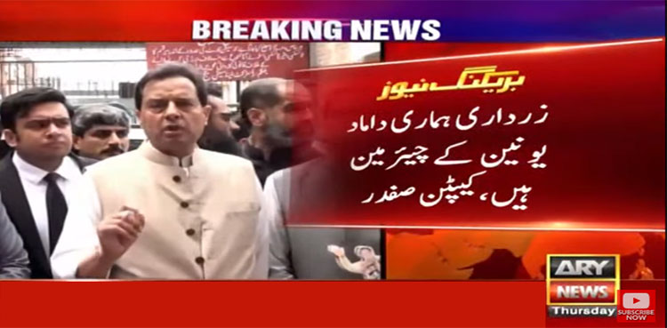 نوازشریف کےداماد کیپٹن (ر) صفدر نےآصف زرداری کوداماد یونین کاچیئرمین قراردےدیا۔
