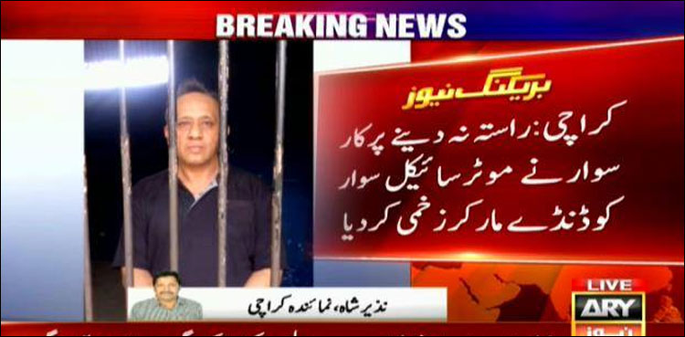 تفصیلات کے مطابق کراچی کے علاقے ڈیفنس میں معمولی تنازع پر کار سوار نے موٹرسائیکل سوار کو زخمی کردیا، کارسوار نے بیس بال بیٹ سے موٹرسائیکل سوار کو تشدد کا نشانہ بنایا۔