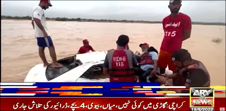 ریسکیو اداروں کے مطابق کار میں میاں بیوی اور ان کے 4 بچوں سمیت ڈرائیور بھی سوار تھا، کار سوار افراد کی لاشیں پانی کے بہاؤ سے آگے بہہ گئی ہوں گی، جن کی تلاش کے لیے ریسکیو آپریشن جاری ہے۔