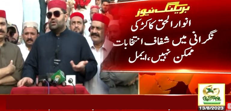 عوامی نیشنل پارٹی کے رہنما ایمل ولی خان نے انوار الحق کاکڑ کی نامزدگی پر کہا کہ ان کی تعیناتی میں شہباز شریف اور راجا ریاض کا کوئی کردار نہیں ہے جب کہ ان کی نگرانی میں شفاف انتخابات بھی نہیں ہوسکتے۔