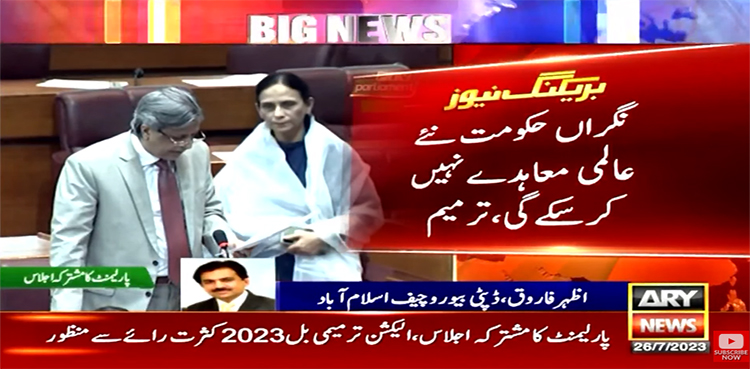 پارلیمنٹ کے مشترکہ اجلاس میں الیکشن ترمیمی بل 2023 کثرت رائے سے منظور کر لیا گیا۔