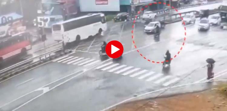 ویڈیو میں دیکھا جاسکتا ہے کہ بس نے کار کو ٹکر ماری جس کے نتیجے میں کار دوسرے ٹریک پر چلی گئی۔