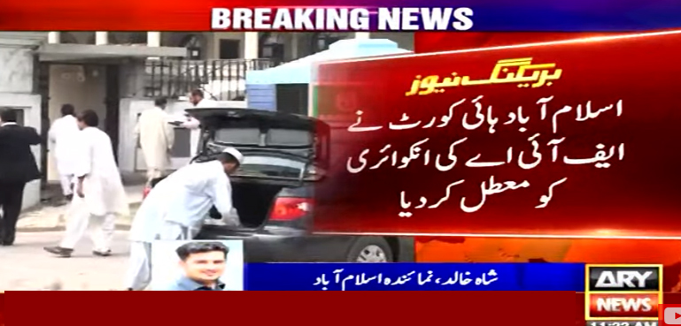 اے آر وائی اور پی ٹی وی میں کرکٹ رائٹس معاہدے کی انکوائری کے خلاف کیس میں اسلام آباد ہائیکورٹ نے ایف آئی اے کی انکوائری کو معطل کردیا ہے۔