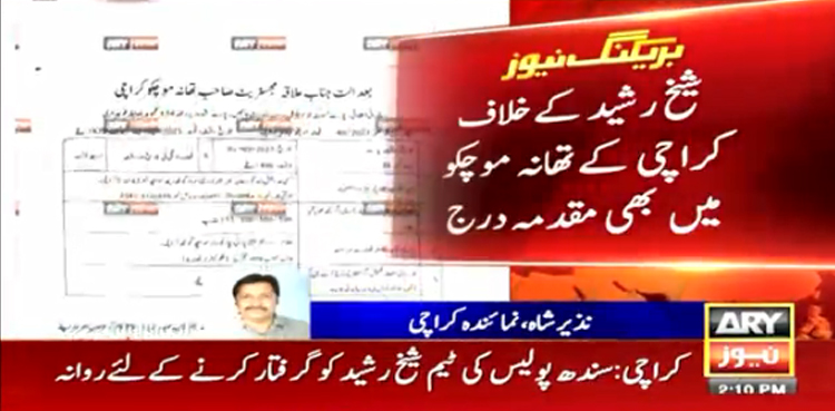 شیخ رشید کے خلاف مری کے بعد کراچی کے تھانہ موچکو میں بھی مقدمہ درج ہوگیا،مقدمہ بلاول بھٹو کیخلاف غیر اخلاقی زبان استعمال کرنے پر درج کیا گیا۔
