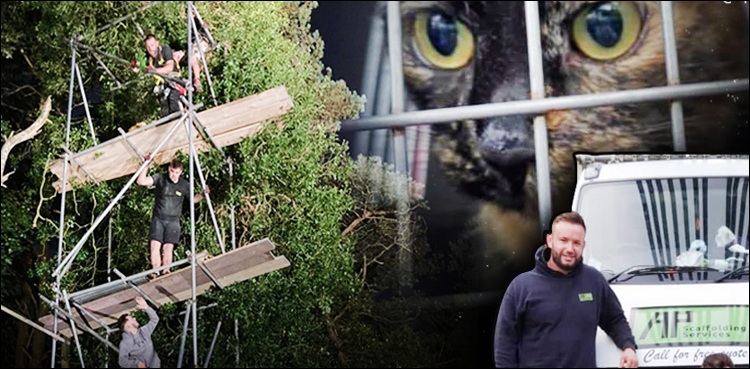 لندن: برطانیہ کے شہر ویلز میں چالیس فٹ اونچے درخت پر پھنسی ہوئی بلی کو بچانے کے لیے پورا شہر جمع ہوگیا۔