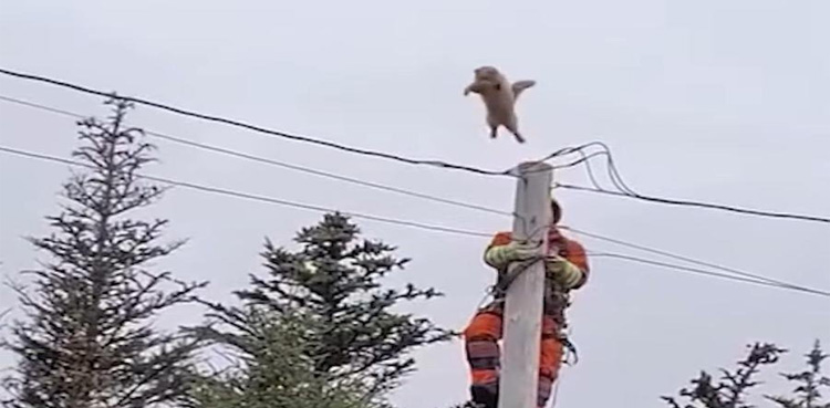 کینیڈا کے صوبے نیو فاؤنڈ لینڈ میں ایک بلی کسی طرح یوٹیلیٹی پول کے بالکل اوپر چڑھ گئی اور کافی دیر تک کوشش کے باوجود وہاں سے اتر نہیں پائی۔ اسی دوران ایک ریسکیو ٹیم اس کی مدد کے لیے وہاں پہنچ گئی۔