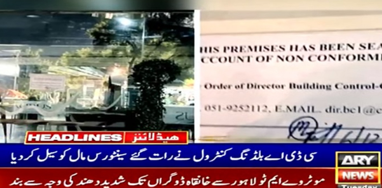 اسلام آباد : سی ڈی اے بلڈنگ کنٹرول اور اور اسلام آباد انتظامیہ نے سینٹورس مال سیل کردیا، مال سیل کرنےکی وجہ غیر قانونی استعمال بتایا گیا ہے۔
