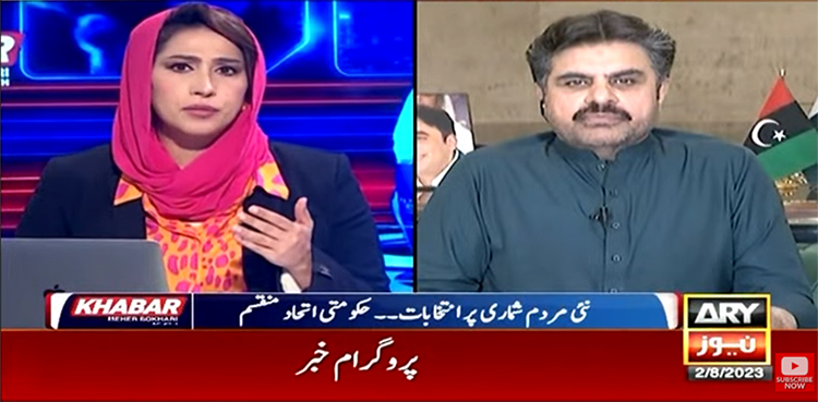 اے آر وائی نیوز کے پروگرام ’خبر‘ میں گفتگو کرتے ہوئے ناصر حسین شاہ نے کہا کہ ایم کیوایم پاکستان کو بھی مردم شماری پرتحفظات ہیں ہمارا مؤقف ہےکہ مردم شماری میں سندھ میں کم گنتی کی گئی ہے۔