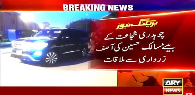 اے آر وائی نیوز کے مطابق مسلم لیگ ق کے سربراہ چوہدری شجاعت کے بیٹے سالک حسین کی سابق صدر آصف زرداری سے بلاول ہاؤس لاہور میں ملاقات ہوئی جو تقریباً 45 منٹ تک جاری رہی۔