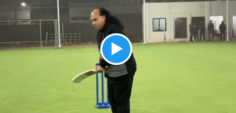 یہ ویڈیو کسی آسٹرو ٹرف گراؤنڈ کی لگتی ہے جہاں گلوکار ہاتھ میں بلا تھامے وکٹوں کے آگے کھڑے ہیں اور بغیر گیند کے مختلف شاٹس لگانے کی اداکاری یا پریکٹس کرتے دکھائی دیتے ہیں۔