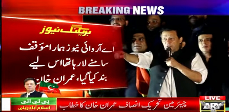 پاکستان تحریک انصاف کے رہنما شہباز گل پر تشدد اور اے آر وائی نیوز کی بندش کے خلاف اسلام آباد میں نکالی گئی ریلی سے خطاب کرتے ہوئے سابق وزیراعظم عمران خان نے کہا کہ آج تمام پاکستانیوں کو خراج تحسین پیش کرتا ہوں، صرف 24 گھنٹے کے نوٹس پر میری کال پر بڑی تعداد میں عوام باہر نکلی۔