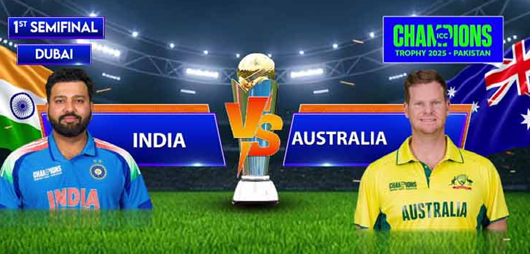 آئی سی سی چیمپئنز ٹرافی 2025 کو جیت کر چیمپئن بننے کے مشن میں آج سے ناک آؤٹ مرحلے کا آغاز ہو رہا ہے۔ پہلا سیمی فائنل دبئی میں کھیلا جا رہا ہے جس میں بھارت اور آسٹریلیا کی ٹیمیں ٹکرائیں گی۔ مقابلہ دوپہر دو بجے شروع ہوگا۔