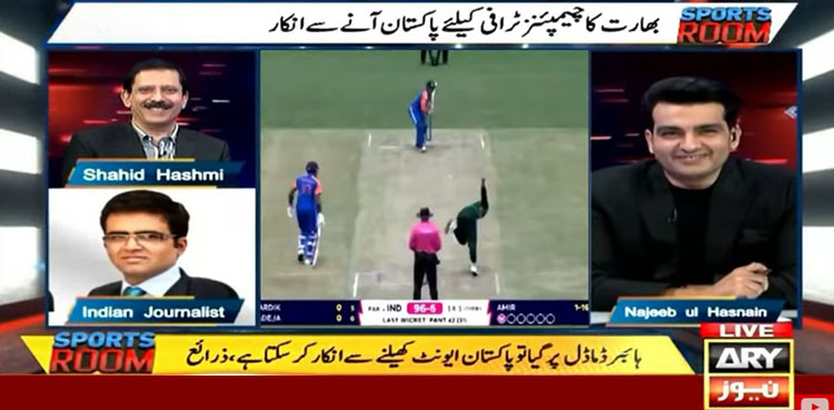 اے آر وائی نیوز کے پروگرام ’اسپورٹس روم‘ میں گفتگو کرتے ہوئے چیمپئنز ٹرافی سے متعلق بھارتی صحافی چندریش نارائن نے کہا کہ جب بھی پاک بھارت کرکٹ ہوتی ہے تو حکومتوں کے درمیان ہی باتیں ہوتی ہیں، 2004 میں جب بھارتی ٹیم پاکستان آئی تھی تب دونوں ملکوں کے صدر کی رضامندی سے سیریز کھیلی تھی اس کے بعد دو سے تین سیریز کھیلی گئیں۔