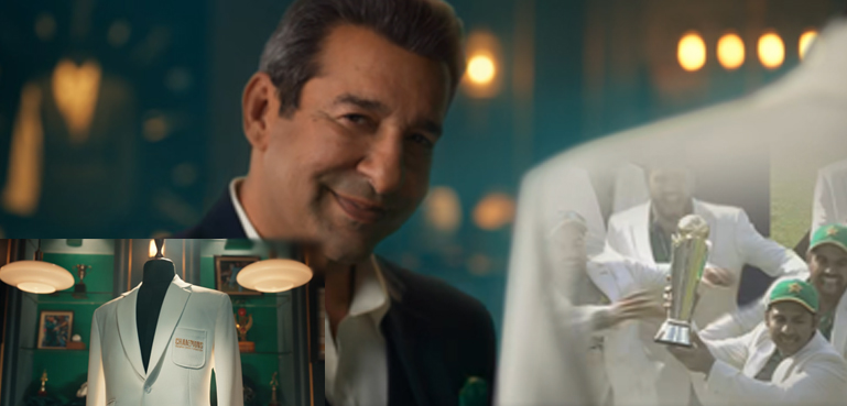 وسیم اکرم پرومو میں سفید جیکٹ کو کرکٹ کے لیے قابل فخر قرار دیتے ہوئے دنیا بھر کے شائقین کرکٹ کو چیمپئنز ٹرافی کے سنسنی خیز لمحات پر مبنی سفر کا حصہ بننے کی دعوت دے رہے ہیں۔