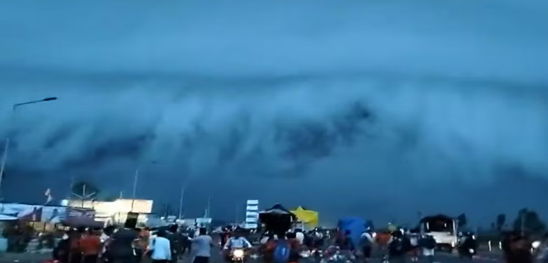 ویڈیو میں دیکھا جاسکتا ہے کہ اتراکھنڈ کے شہر ہری دوار میں بڑے پیمانے پر بادل آسمان پر چھا گئے ہیں، ابر آلود موسم میں آسمان پر بادلوں کی تشکیل اس طرح ہوئی کہ لوگوں کو لگا کوئی طوفان آنے والا ہے۔