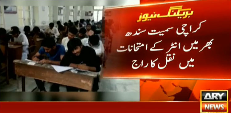 تفصیلات کے مطابق کراچی سمیت سندھ بھر میں انٹر کے امتحانات میں نقل عروج پر ہے، کئی شہروں میں پرچے وقت سے پہلے آؤٹ ہوگئے، طلباء بلاخوف و خطر نقل کرنے میں مصروف رہے۔