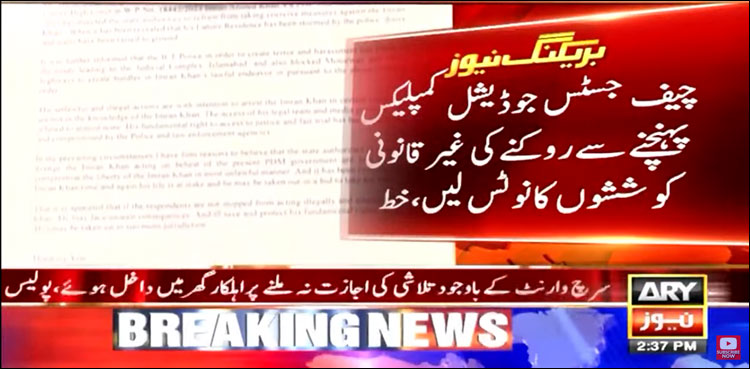 تفصیلات کے مطابق رہنما پی ٹی آئی اسد عمر نے چیف جسٹس سپریم کورٹ کو خط لکھ دیا، جس میں انھوں نے کہا کہ عدالت نے عمران خان کو پیش کرنے کا حکم دیا ہے، چیف جسٹس انھیں جوڈیشل کمپلیکس پہنچنے سے روکنے کی غیر قانونی کوششوں کا نوٹس لیں۔
