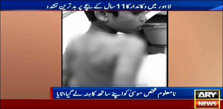 اے آر وائی نیوز کی رپورٹ کے مطابق لاہور کے علاقے کاہنہ میں دکاندار نے 11 سالہ بچے پر پائپ سے تشدد کیا اور پلاس سے ناخن کھینچ لیے۔