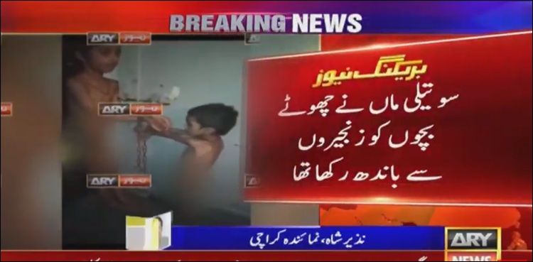 اے آر وائی نیوز کے مطابق گلبرگ کراچی میں سوتیلی ماں نے اپنے ظالمانہ عمل سے مامتا کو شرما دیا، دو معصوم بچوں کو برہنہ حالت میں زنجیروں میں جکڑ کر بھوکا پیاسا رکھا، اپنے ہی گھر میں بچے قیدیوں سے بد تر حالت میں 5 ماہ تک ظلم سہتے رہے۔