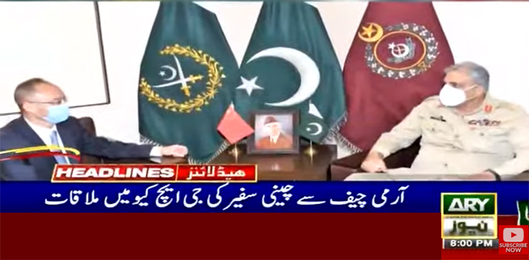 آرمی چیف جنرل قمر جاوید باجوہ سے چینی سفیر نے ملاقات کی جس میں سی پیک پرپیشرفت اورعلاقائی سیکیورٹی کے معاملات زیر غور آئے۔