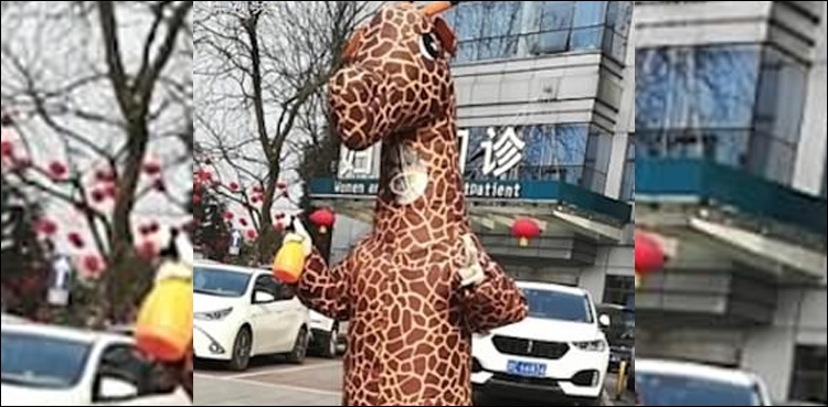 بیجنگ : چینی خاتون نے ہلاکت خیز کورونا وائرس نے بچاؤ کےلیے زرافے کا روپ دھار لیا، خاتون کی اس عجیب و غریب حرکت کی ویڈیو چینی سوشل میڈیا پر وائرل ہوگئی۔