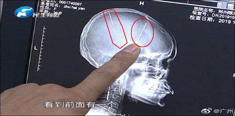 بیجنگ: چین میں ٹریفک حادثے کا شکار ہونے والی خاتون کے سر میں پانچ پانچ سینٹی میٹر لمبی 2 سوئیوں کی موجودگی کا انکشاف ہوا۔