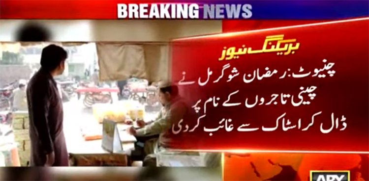 چنیوٹ: رمضان شوگر مل نے تاجروں کے نام پر چینی کا بڑا اسٹاک غائب کردیا ہے۔