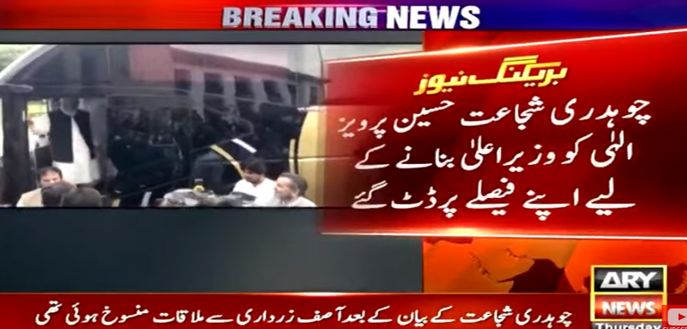اے آر وائی نیوز کے مطابق پاکستان مسلم لیگ ق کے سربراہ چوہدری شجاعت حسین پرویز الہٰی کو وزیراعلیٰ پنجاب بنانے کے فیصلے پر ڈٹ گئے ہیں اور انہوں نے پارٹی اراکین کو پرویز الہٰی کو ووٹ دینے کی ہدایت کردی ہے۔