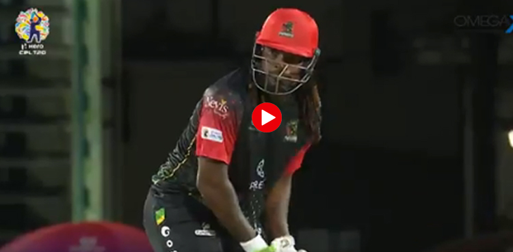 کیربین پریمیر لیگ میں جمعرات کو سینٹ کنٹس نیوس پیٹریوٹس اور بارباڈوس رائلز کے درمیان ہونے والے میچ میں کرس گیل کا بلاخاص تو نہ چل سکا لیکن ایک ہی شاٹ نے سب کو حیران کردیا۔